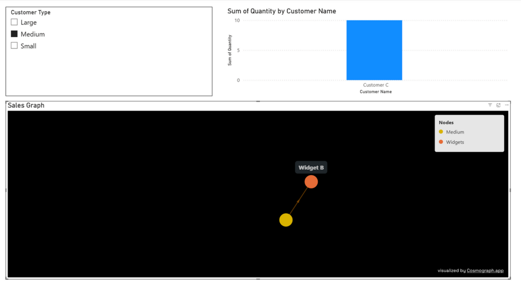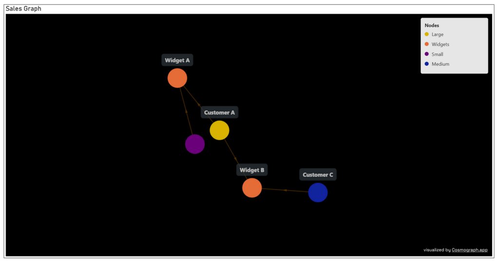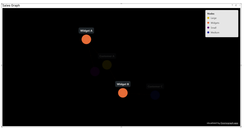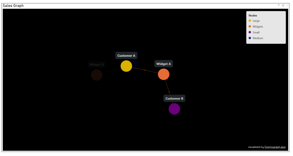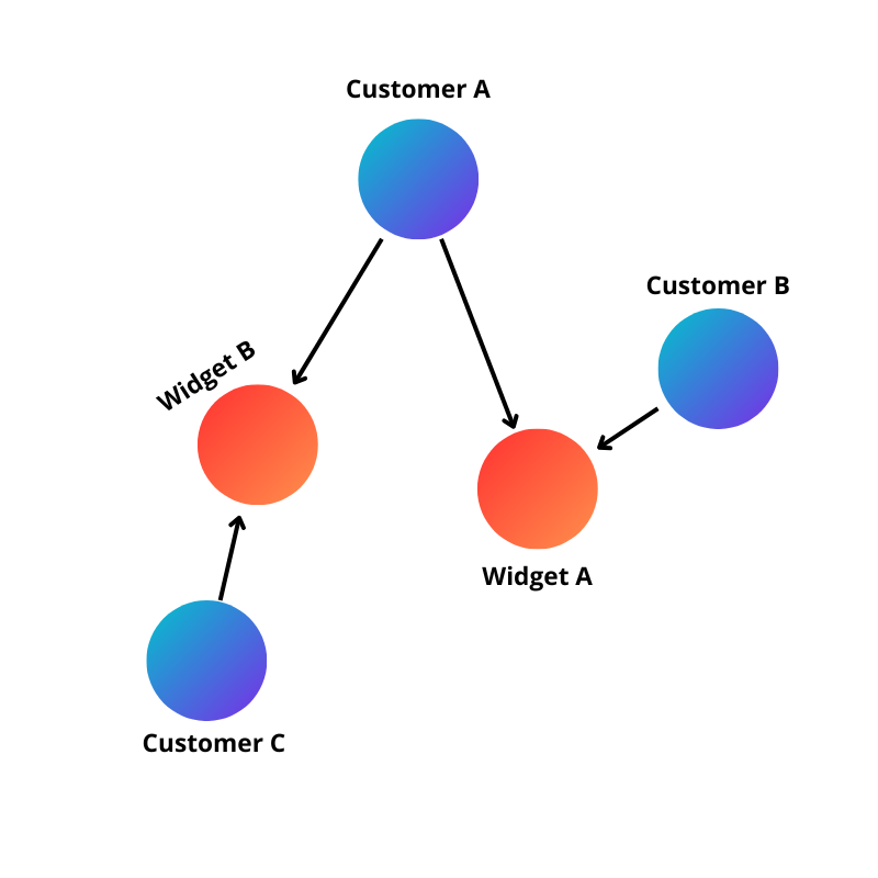 For example, selecting “Widget A” with “select adjacent nodes” on shows all customers who have purchased that widget: