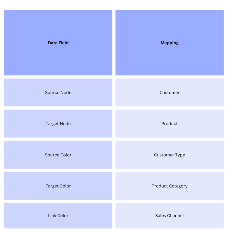 - Source Color -> This is a category identifier for the source node (for example, Customer Type)