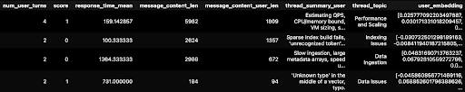 – user_thread_summary = 126 characters or less summary of the row’s column ‘message_content_user’